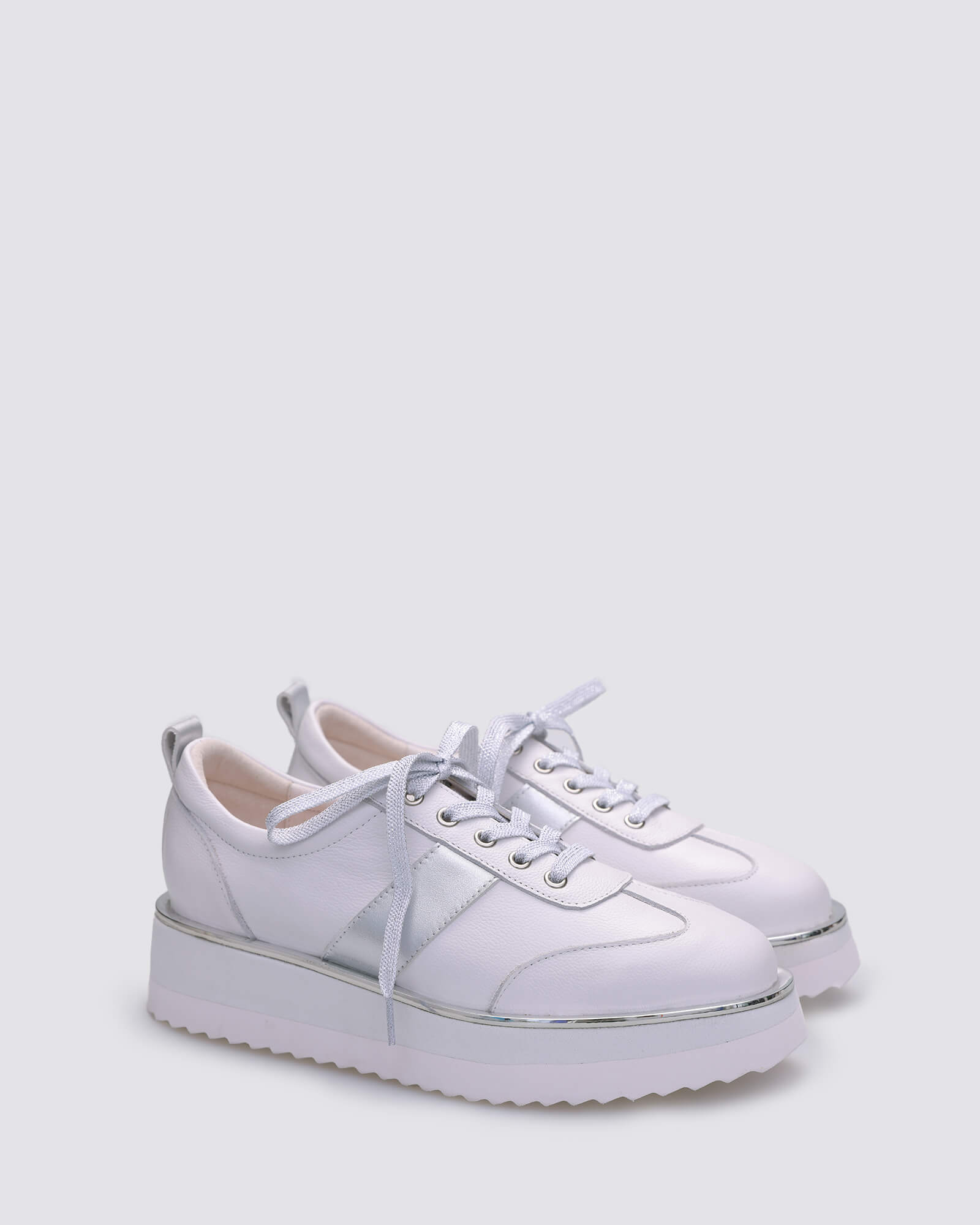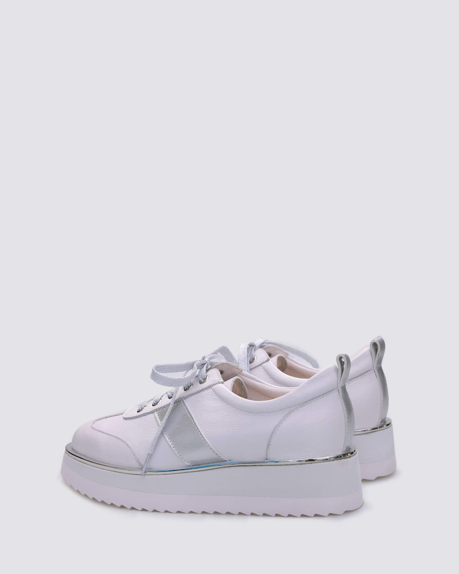 Meet Kori: the platform sneaker with a streetwear soul and everyday polish. Sleek white leather is paired with metallic silver accents for a pop of shine, while the chunky sole adds lift without compromising on comfort. Whether you're heading out in denim, activewear, or something dressy, Kori’s the kind of sneaker that effortlessly finishes the look.