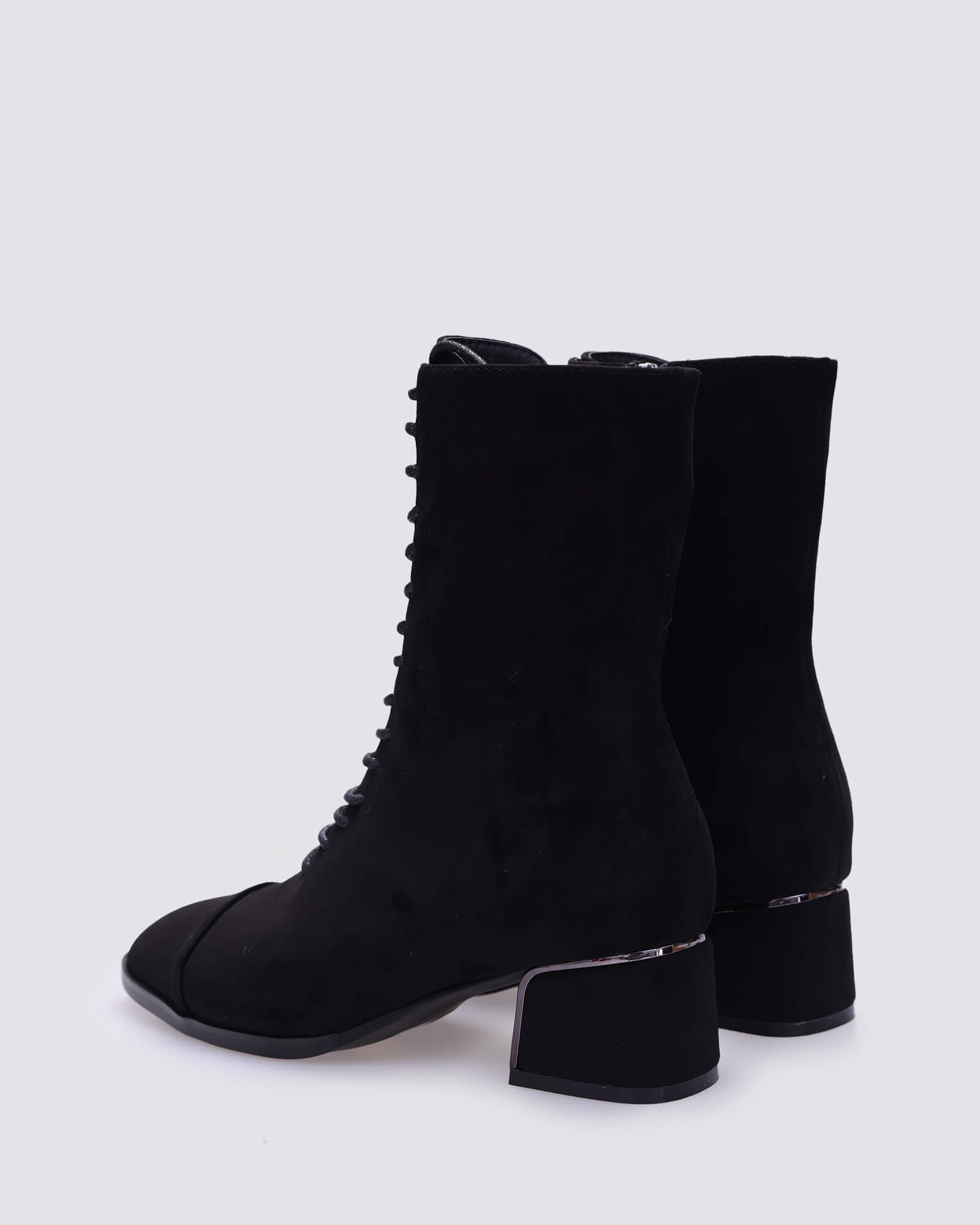 The soft micro suede upper creates a smooth, streamlined look, while the lace-up front adds a touch of structure and personality. An inside zip ensures easy on-and-off wear and allows for a more customised fit. Finished with a block heel featuring subtle gunmetal detailing, Laverne delivers just the right amount of height with a contemporary twist.