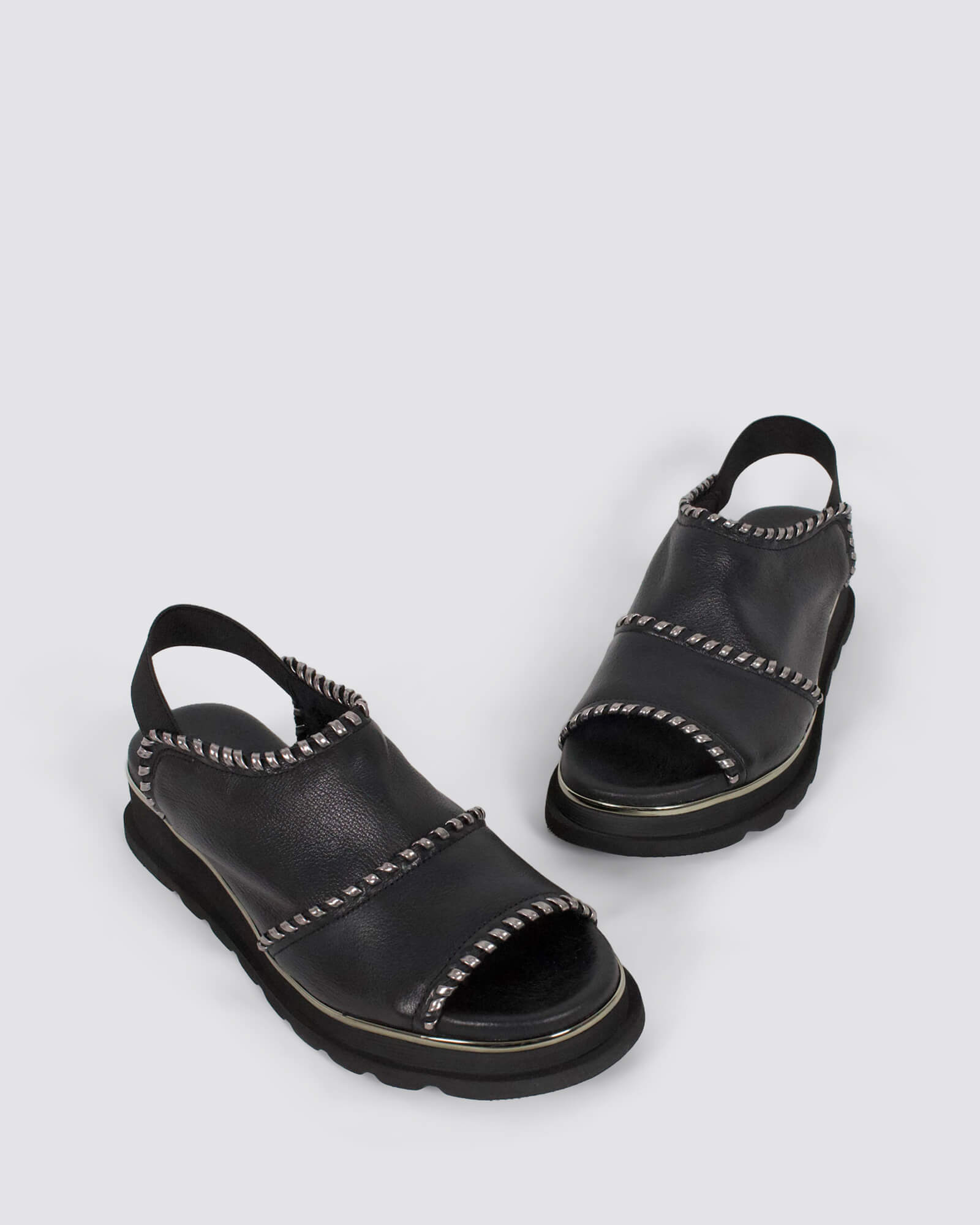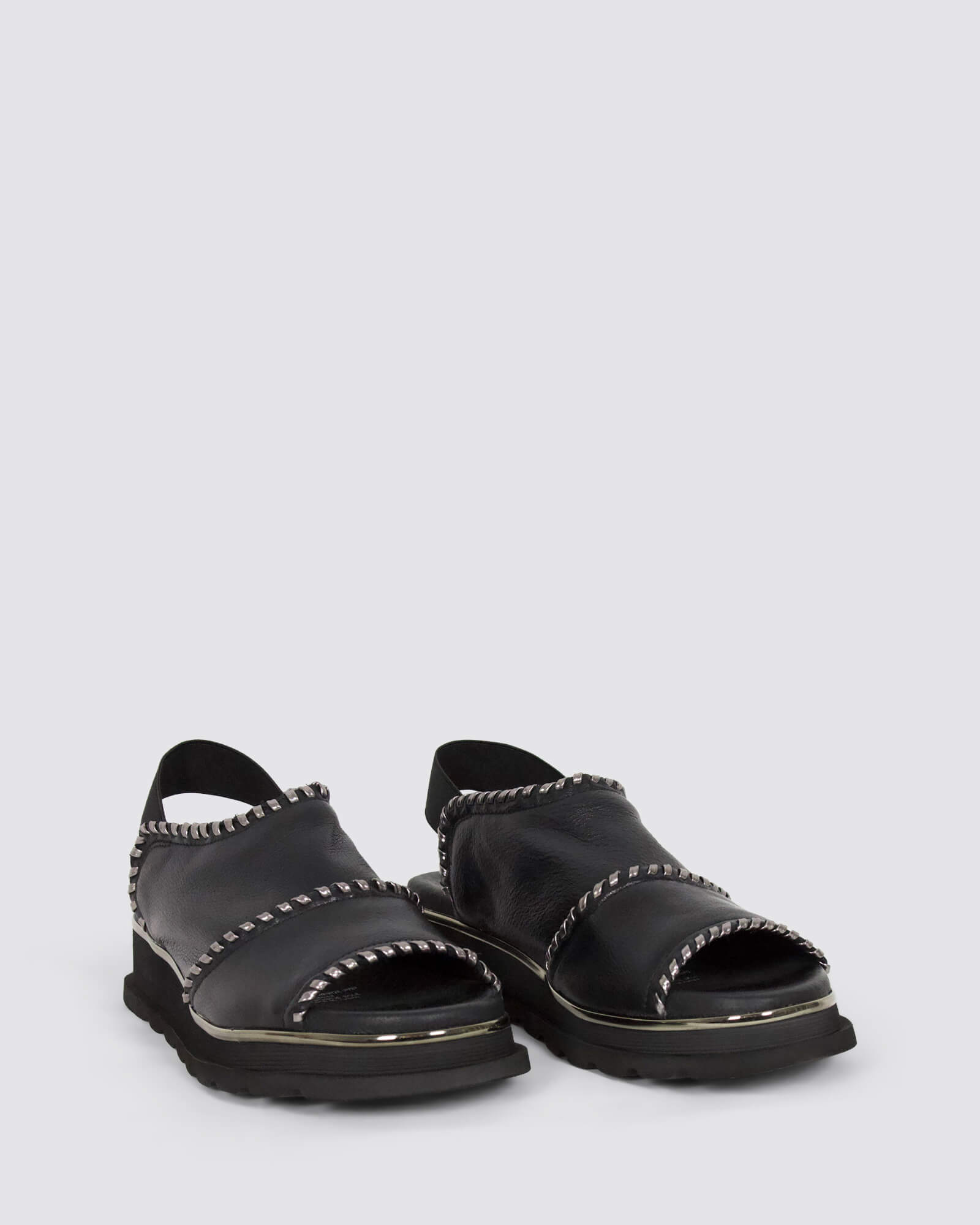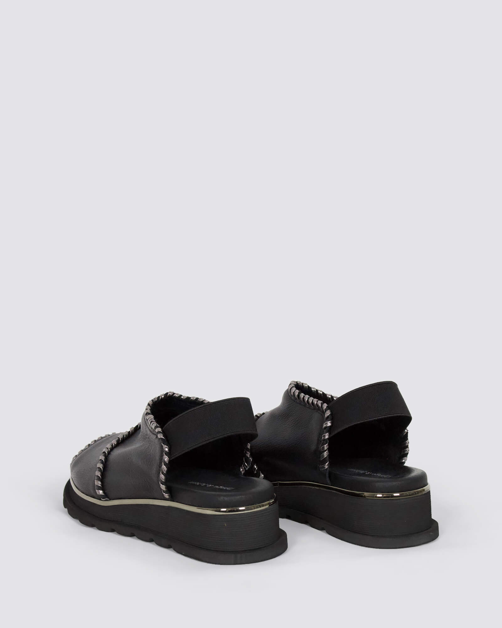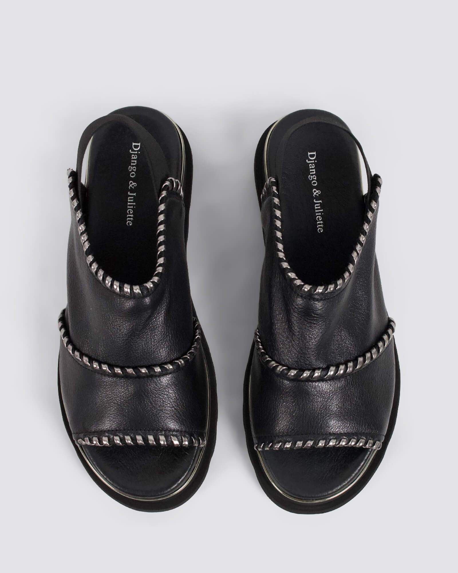 Django & Juliette Carlenet Black Pewter sandals feature a 3.7cm chunky sole, elasticated heel strap, and visible stitch detailing—perfect for summer strolls or casual outings. Pair with denim shorts, midi skirts, or linen trousers for seaside walks, picnic dates, or casual brunches.