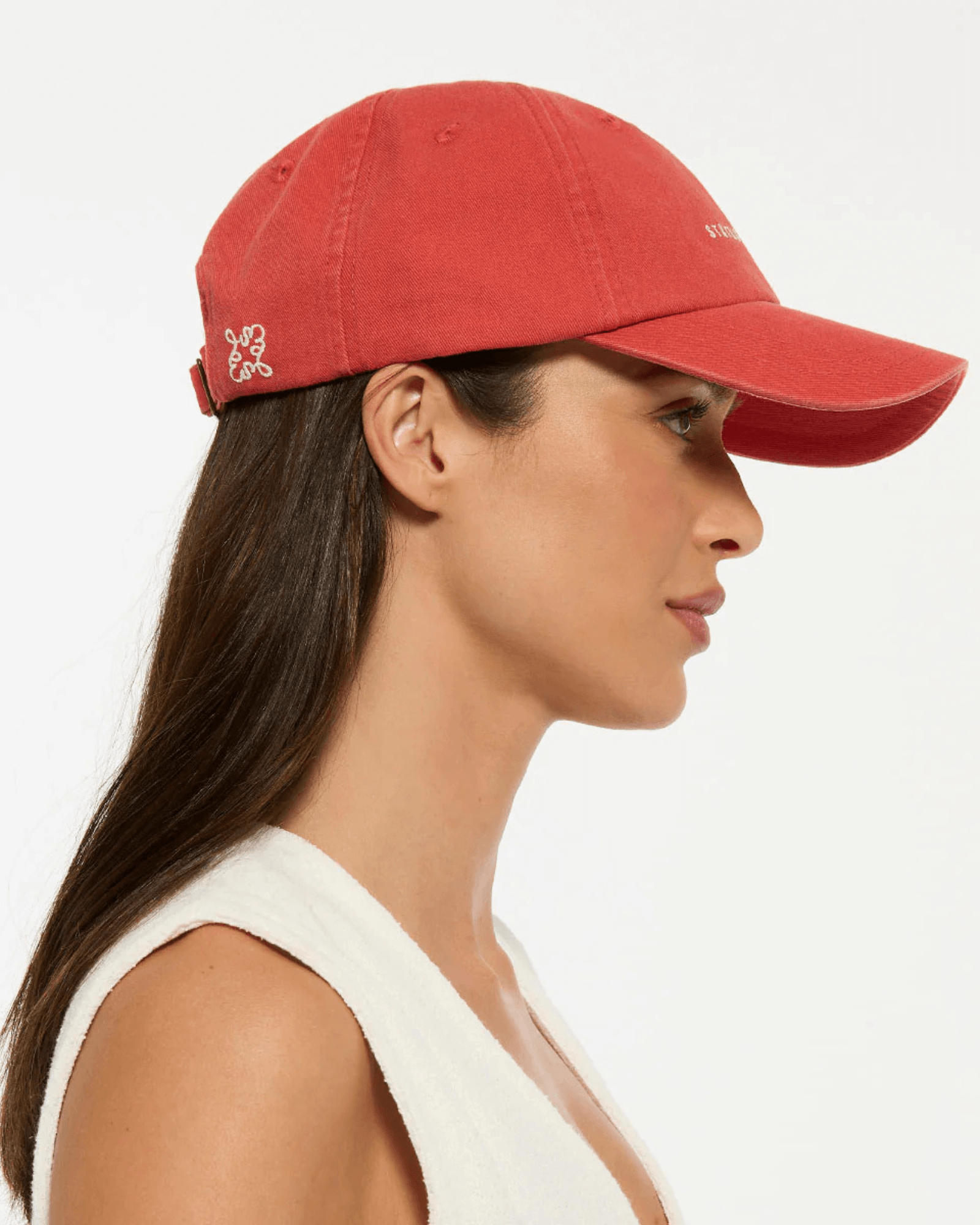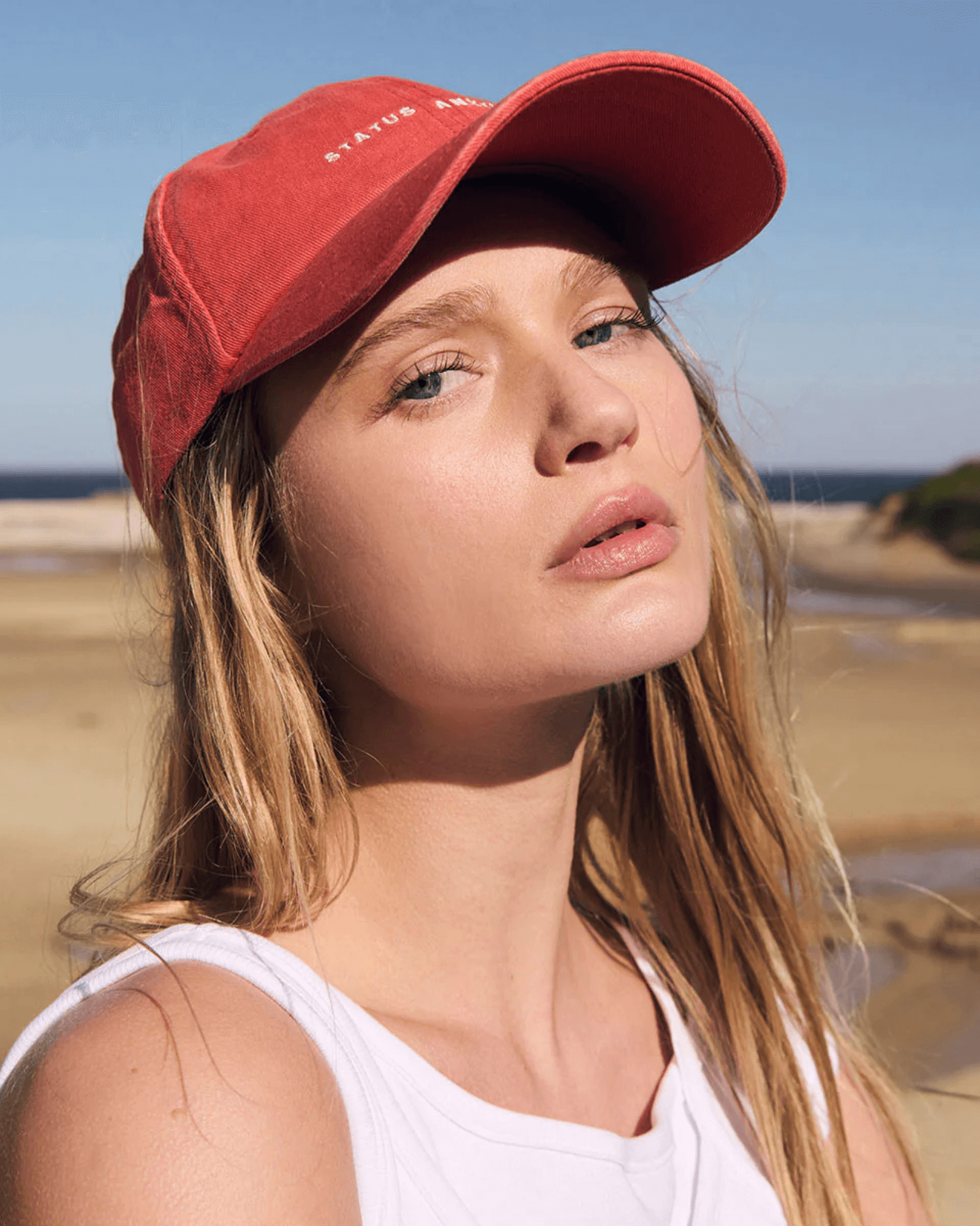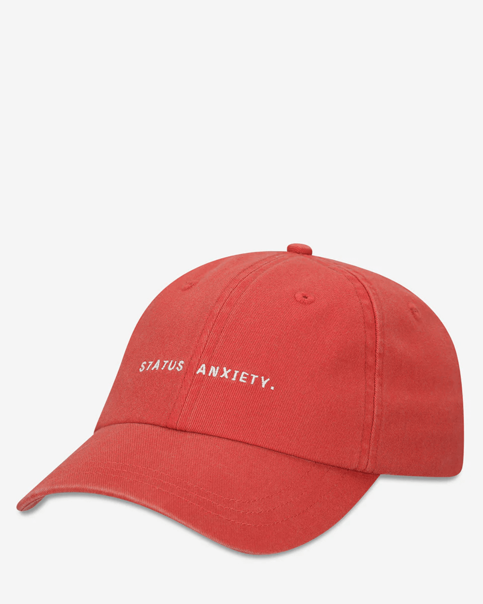 The Status Anxiety Cap in Watermelon is a pre-washed cotton twill essential with an embroidered logo and adjustable strap, offering an easy, relaxed fit for sunny days. A go-to accessory for beach days, walks, weekends and everything in between.