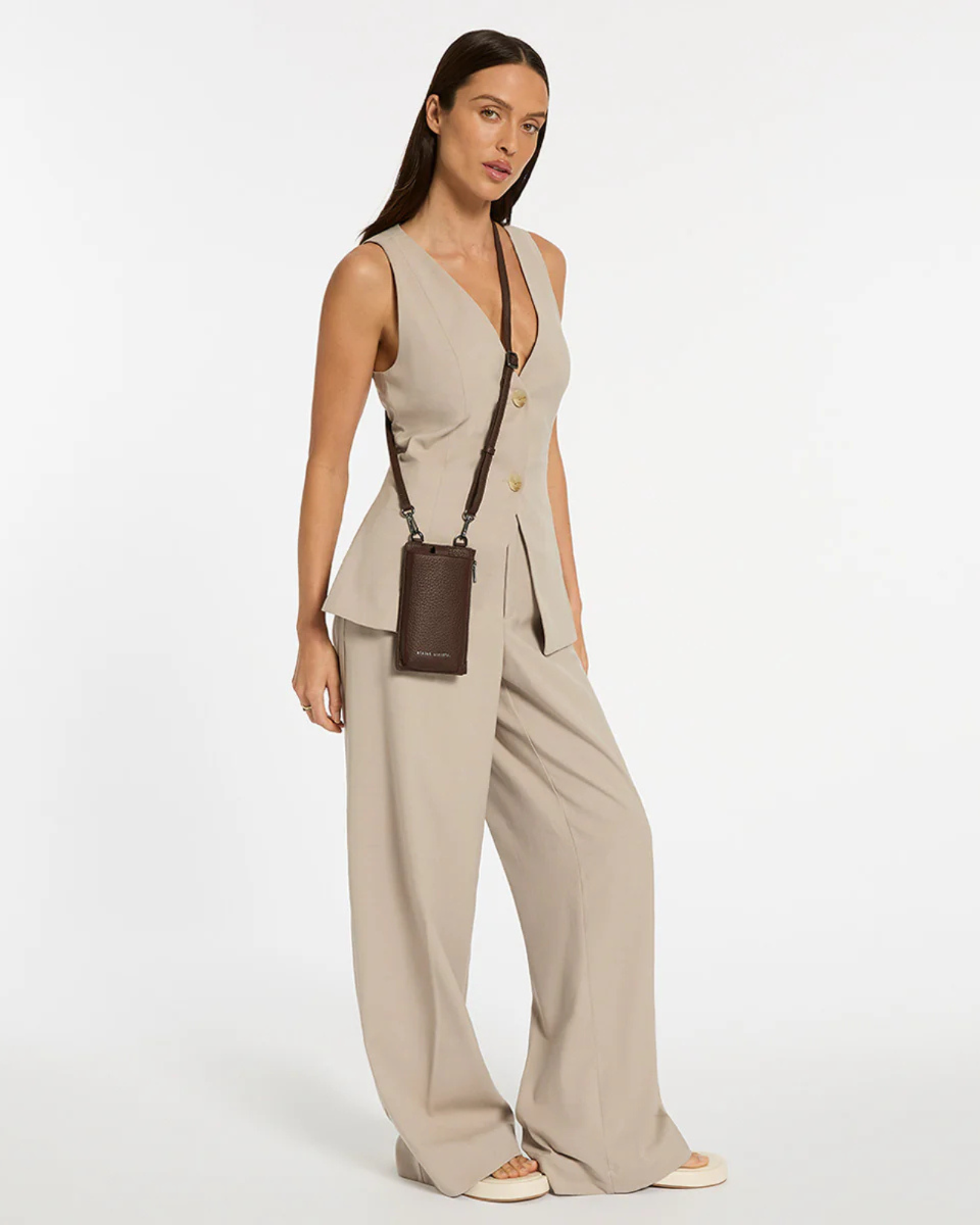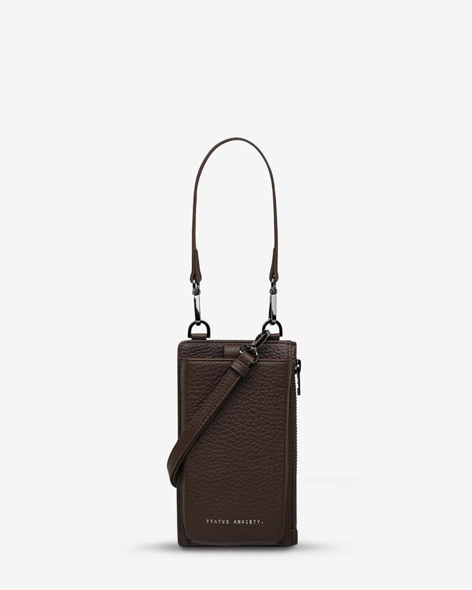 The Voyager Bag in Cocoa by Status Anxiety is a crossbody bag that doubles as a wallet and phone case, with padded phone pocket and card slots. The Voyager Bag is perfect for events or weekends away, slipping effortlessly from day to night. Pair with casual jeans, tailored jackets, or weekend dresses.