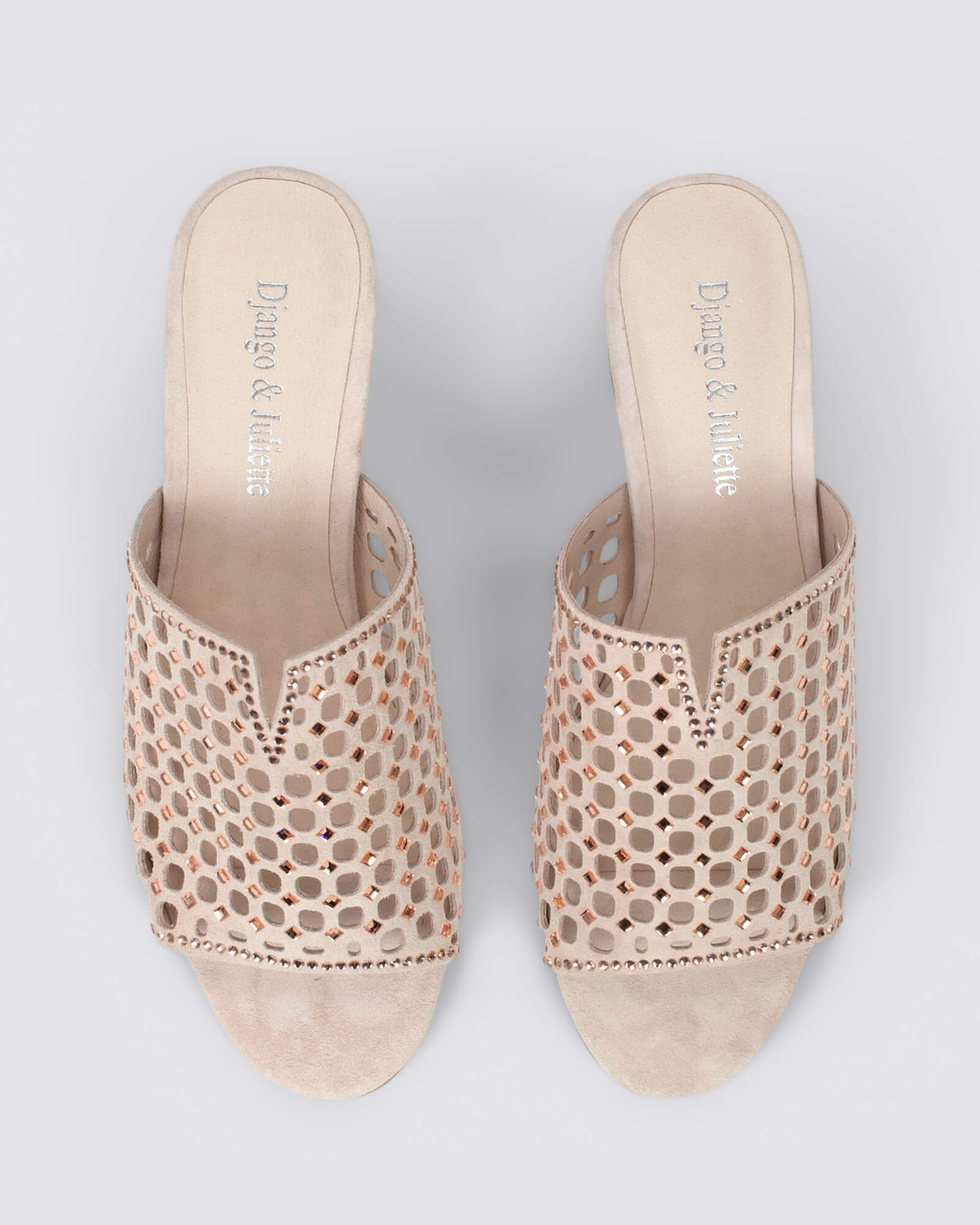 The Jenie Heeled Mules in Nude Rose from Django & Juliette offer a stylish slip-on option with a comfortable heel. Ideal for casual outings or elevating your day-to-night looks with ease.