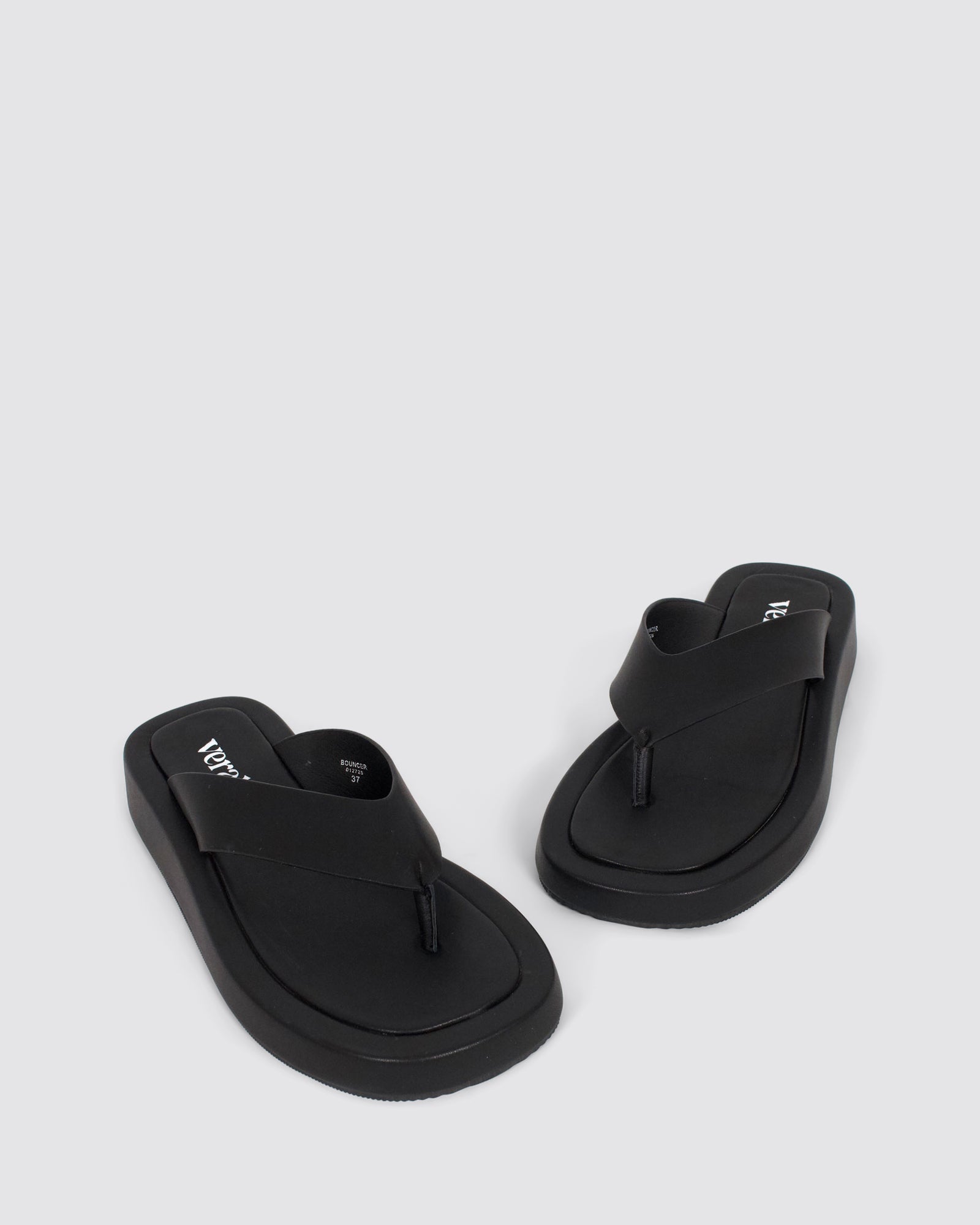 Bouncer II in Black by Verali channels 90s style with a 3cm platform sole, padded footbed, and easy slip-on design - perfect for casual summer days. Their slip-on style makes them a fuss-free choice for casual outings or beach days, keeping your look fresh and fun.