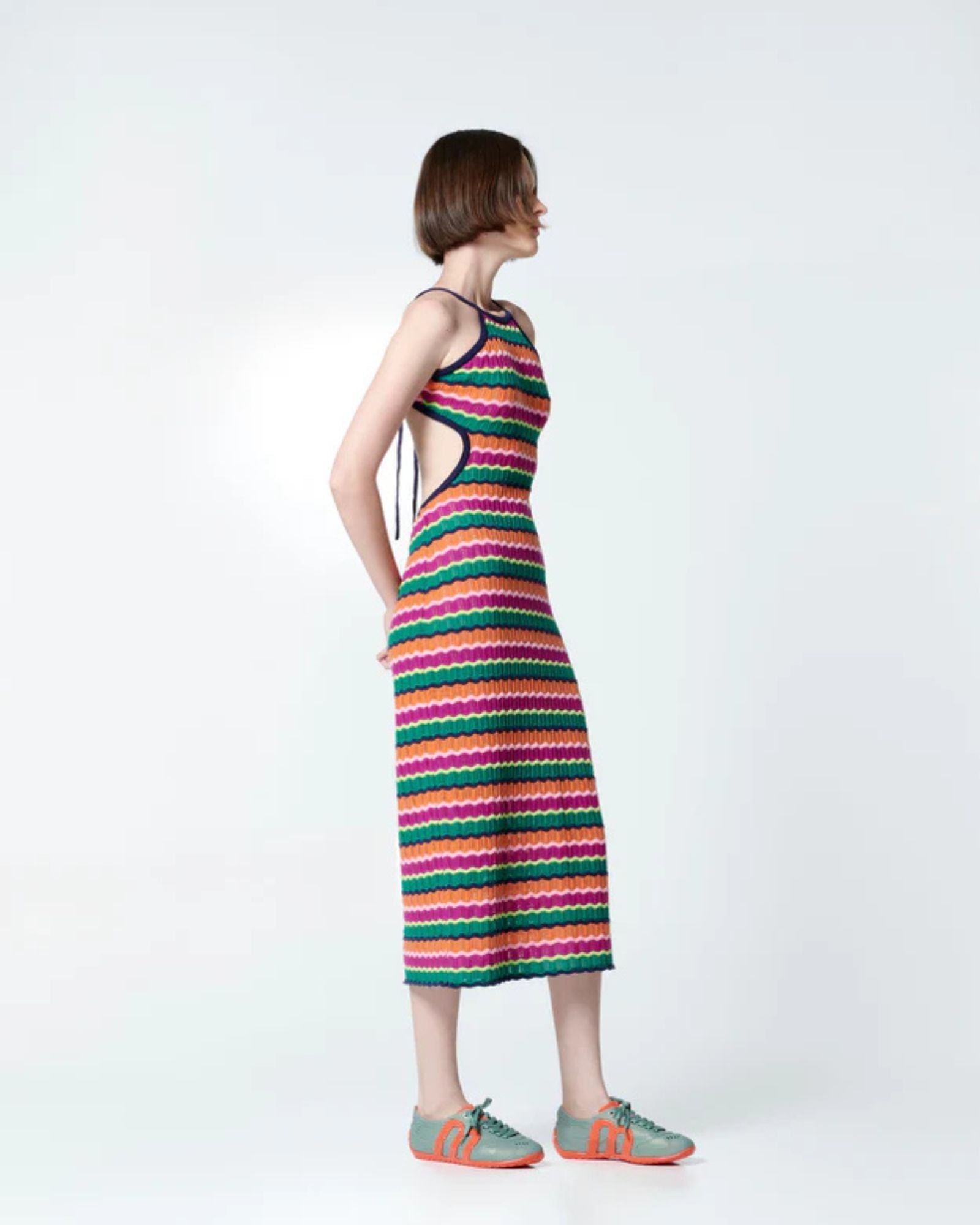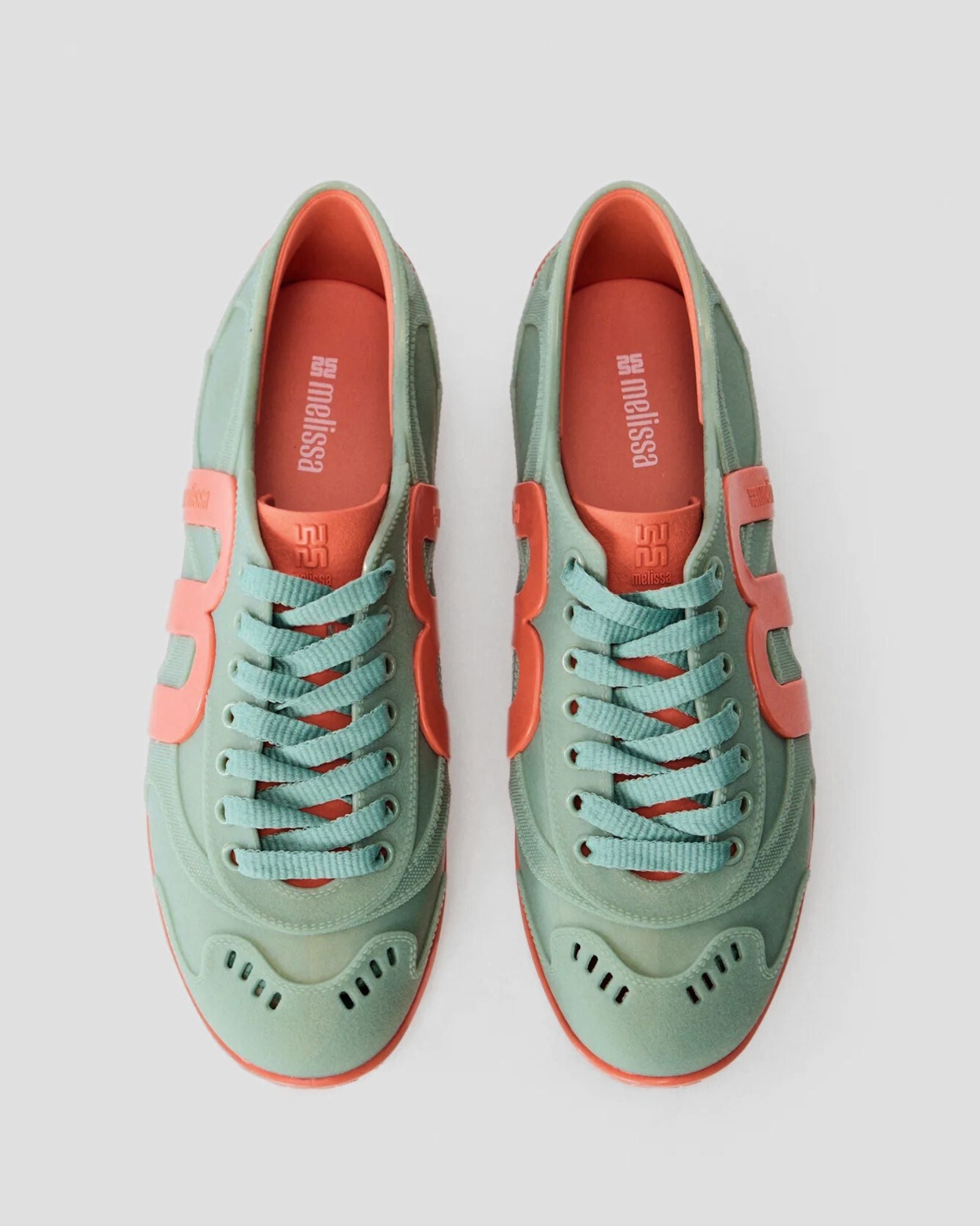 Crafted from Melissa’s signature Melflex recycled PVC, the sneaker features a lace-up closure and a PU insole for comfort. Unique monogram detailing on the sole and sides adds subtle flair, while the bubblegum-scented, recyclable design ensures practicality and sustainability. Finished in a vibrant orange and blue colourway, 36120 pairs effortlessly with casual outfits or bold, fashion-forward looks.