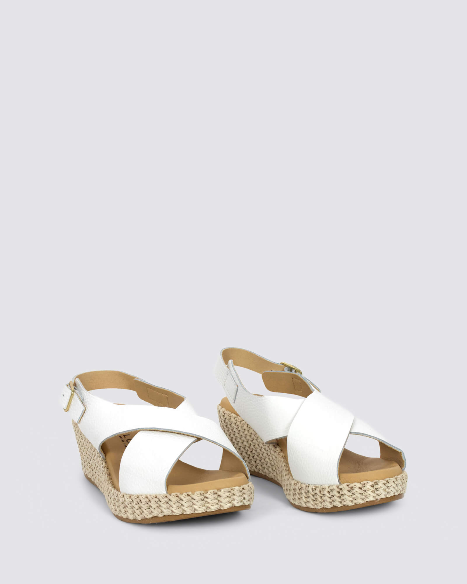 Step into summer with Pitillos 10567 wedge sandals in crisp Blanco White. The leather criss-cross straps offer a flattering fit while the adjustable buckle ensures security. With a 5.5 cm wedge and 2 cm platform, these wedges combine comfort and style, perfect for brunches, work, or garden parties.