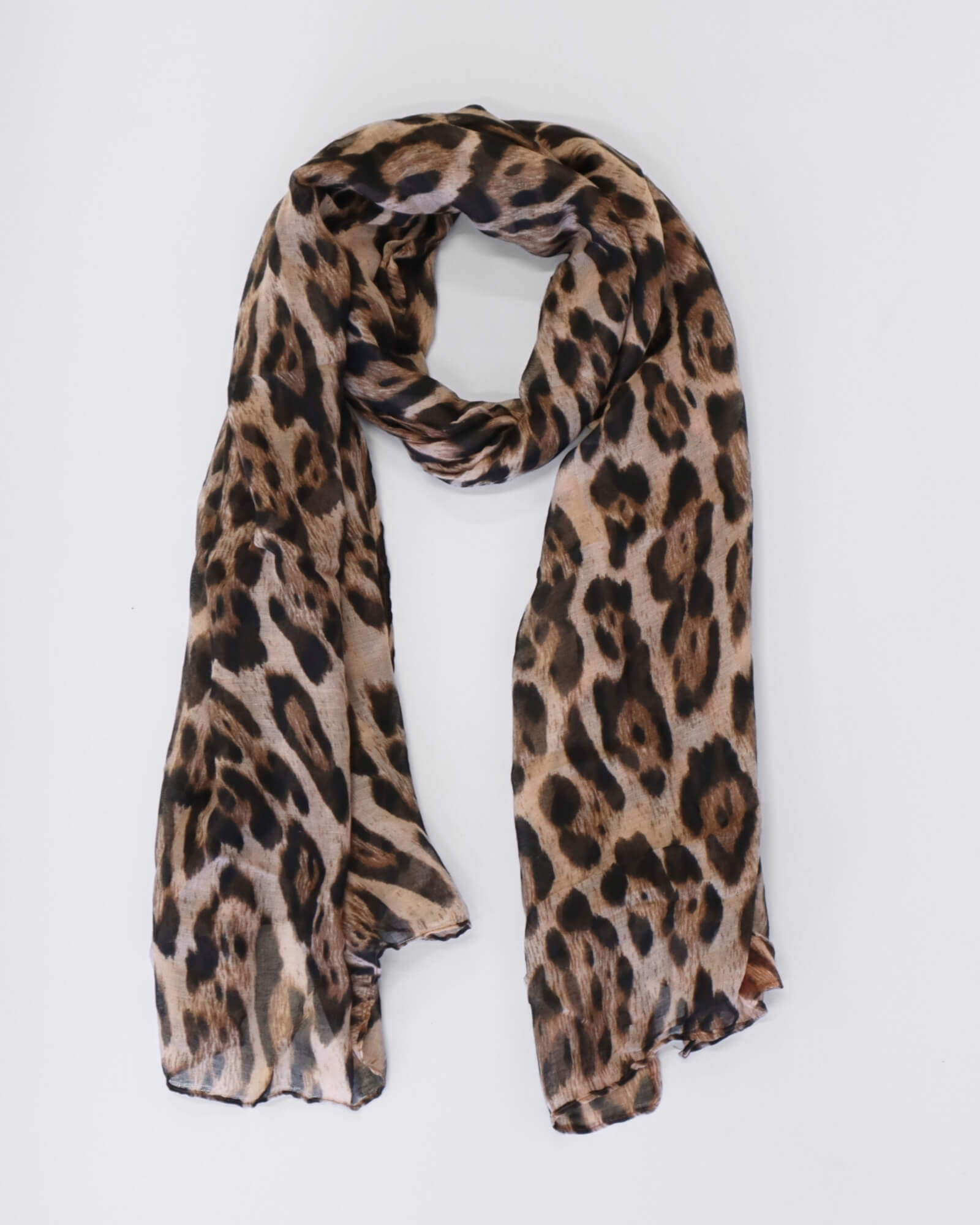 The Avery Scarf in Brown Leopard by Andrea Biani is a light, flowing accessory designed for warmer days. With generous proportions and an airy finish, it’s the perfect way to complete any outfit.