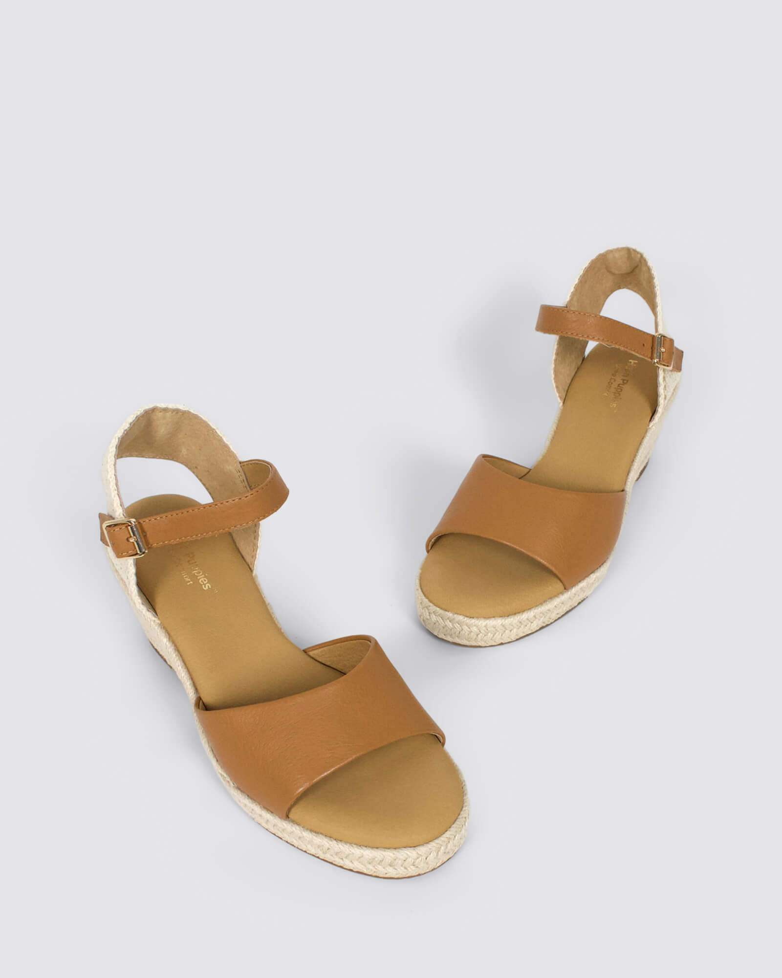 A warm-weather favourite with elevated comfort, the Ersa wedge in tan by Hush Puppies brings timeless espadrille styling. The smooth leather upper pairs back easily with linen, denim, skirts and dresses, while the woven heel detail and adjustable buckle keep the look relaxed and secure. The hidden hero is the Deep Comfort footbed - plush, supportive and ideal for long summer days on your feet.