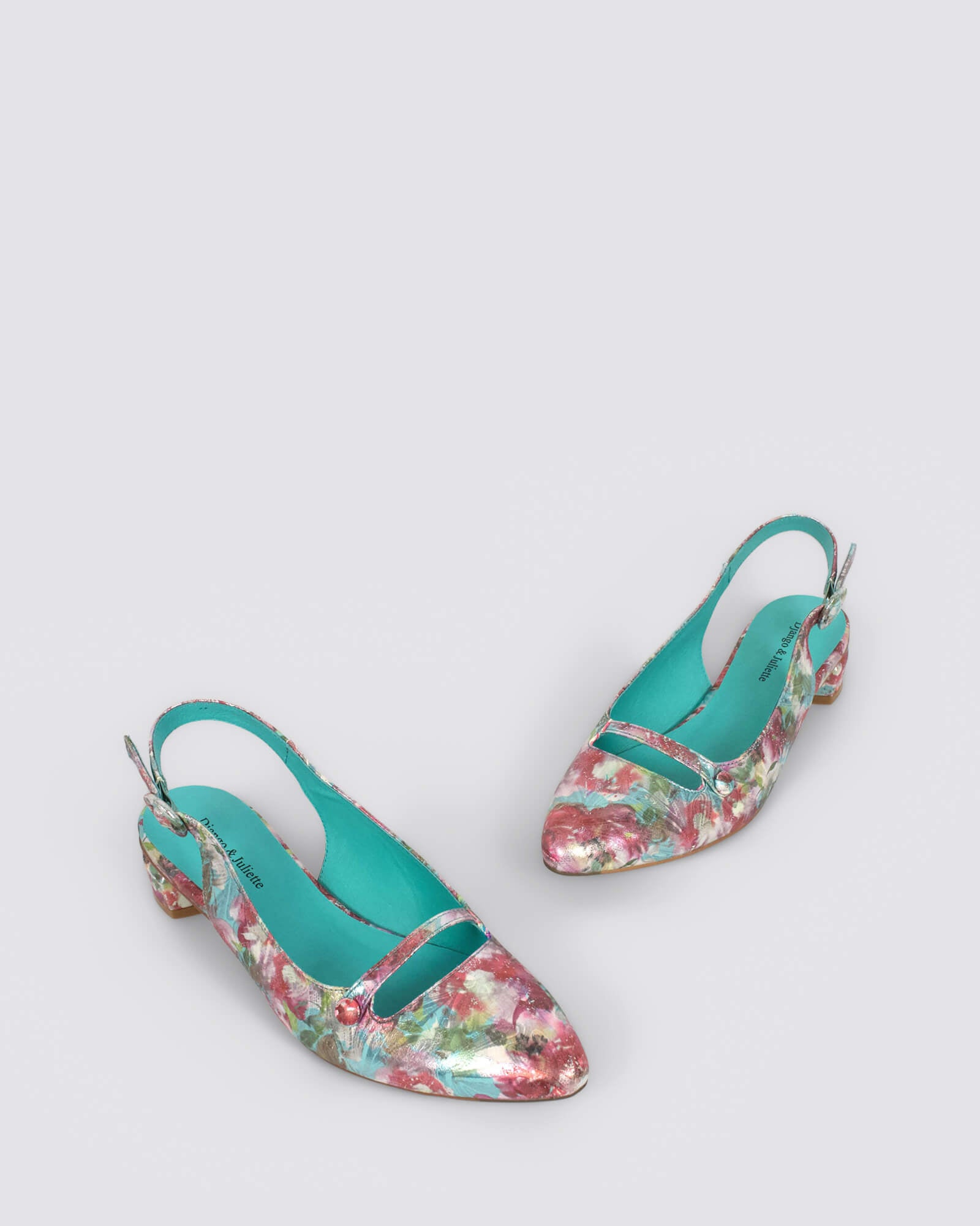 Franney in Aqua Red Metal by Django & Juliette adds a refined twist to the classic slingback flat, featuring premium leather, a 2.5cm heel and a buckled strap for effortless day-to-night wear. Pair with tailoring, midi skirts or cropped denim for instant sophistication.