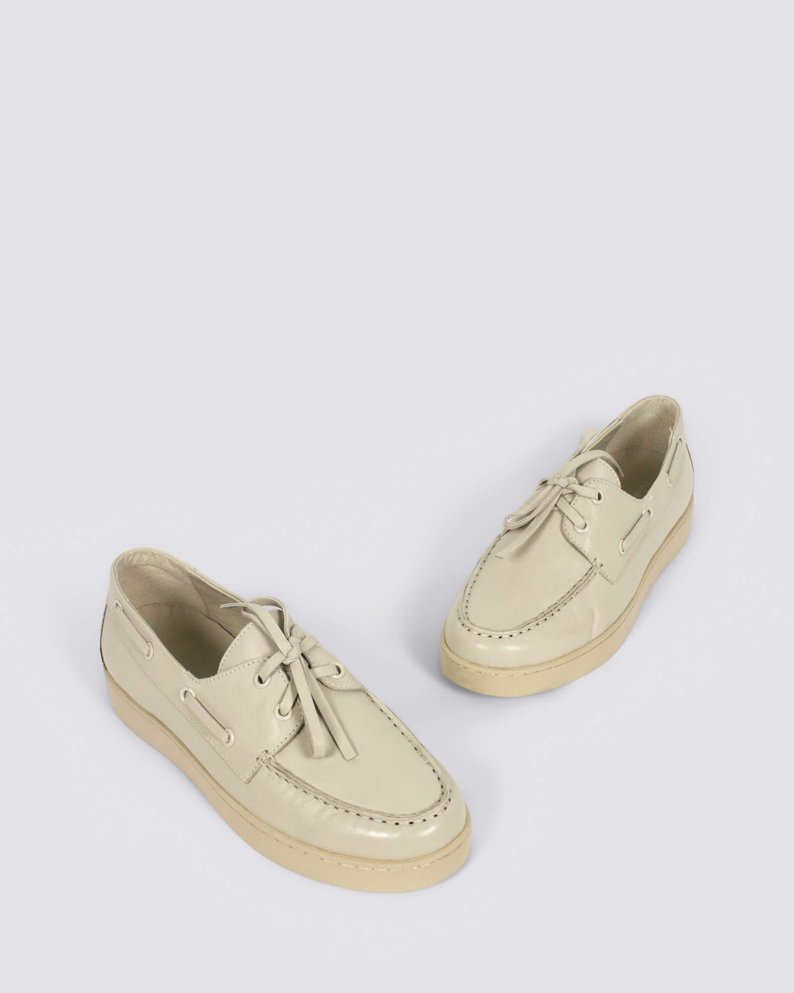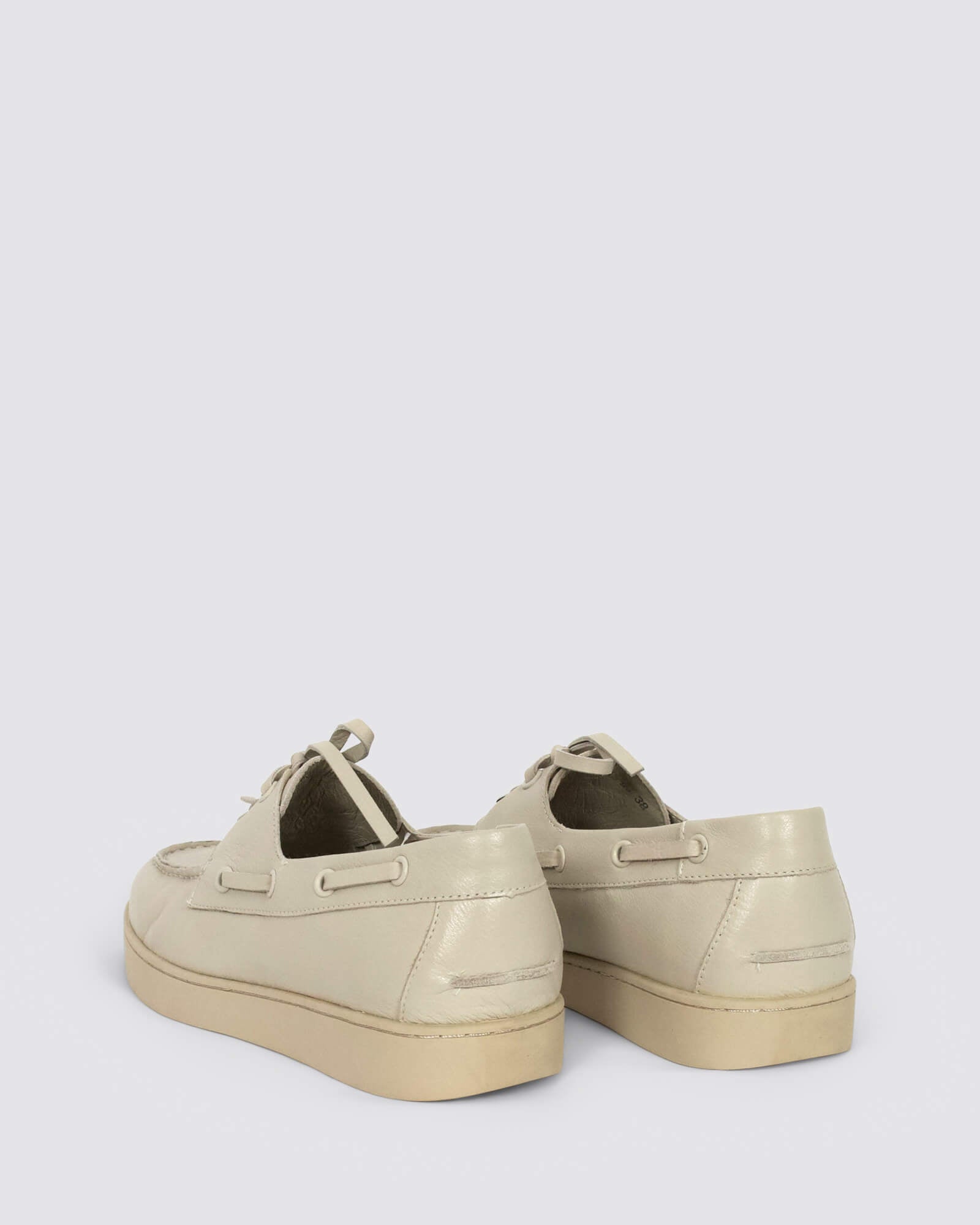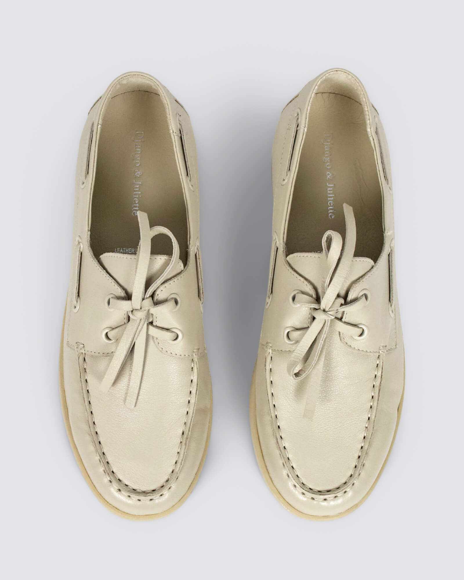Django & Juliette Jaylohs Almond leather boat shoes feature a 3 cm heel, lace-up design, and flat sole. Pair with cropped jeans, shorts, or a casual dress for seaside strolls, weekend brunches, or city explorations.