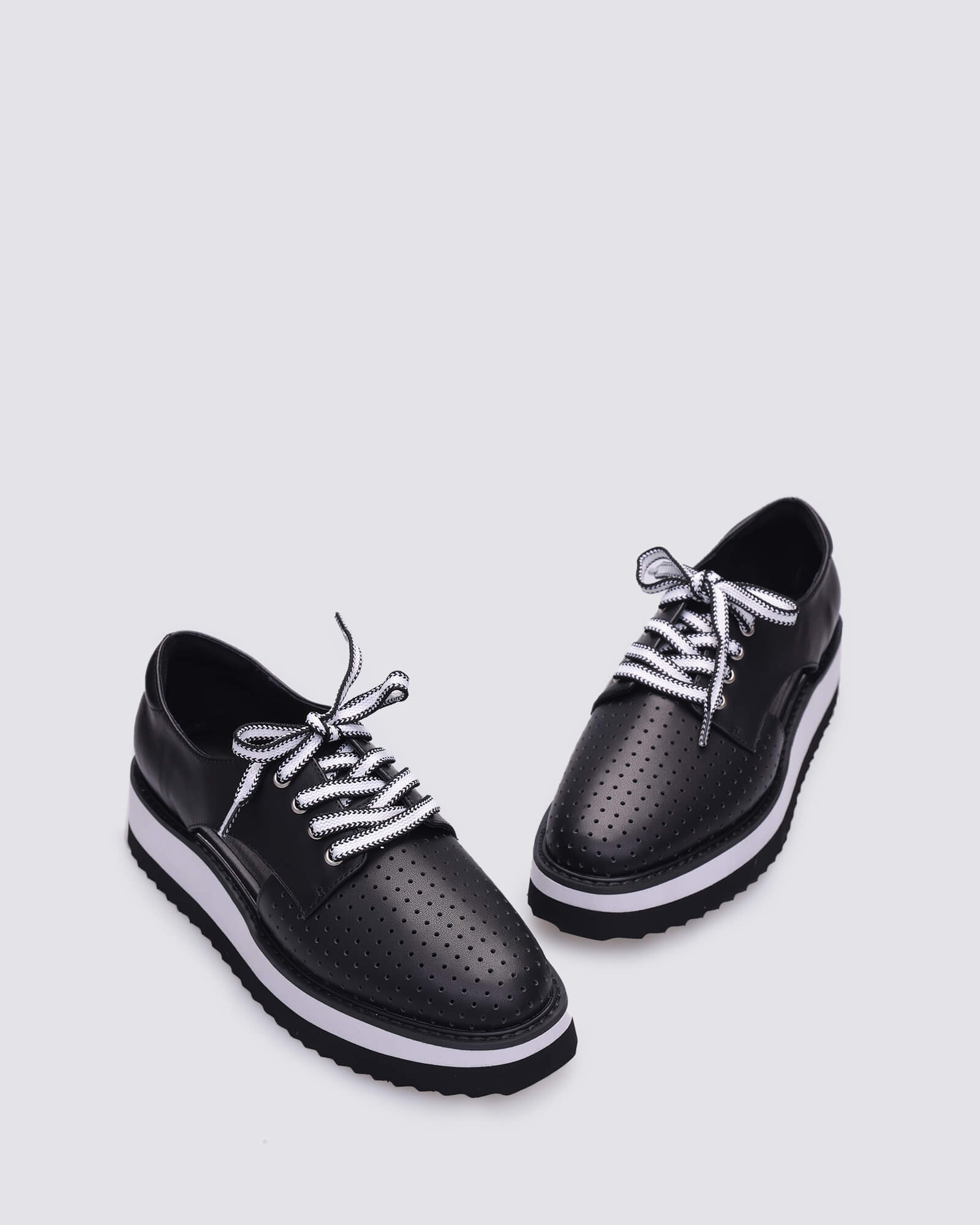 Kassidy in Black blends a bold silhouette with fresh details - think perforated sides, contrast laces, and a chunky platform for everyday lift. This platform sneaker combines polished black leather with edgy contrast details. With subtle cutouts for added breathability, it’s a statement maker that doesn’t sacrifice comfort.