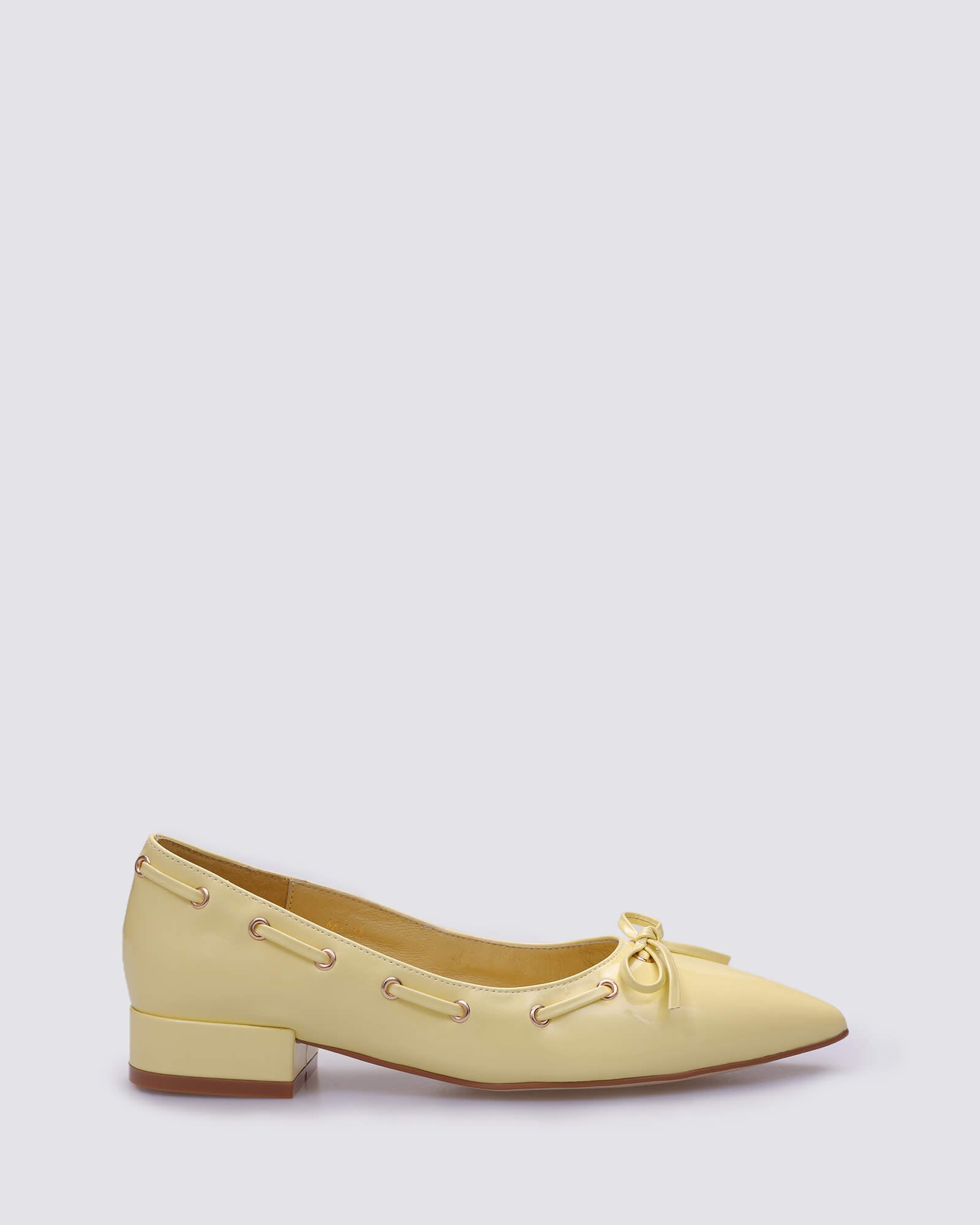 Slip into something sunny with the Key flat in Lemon. Crafted in high-shine patent leather with a pointed toe and playful bow detail, this joyful hue adds personality to any outfit - from tailored trousers to floral skirts. Designed for all-day wear, Key makes a quietly bold statement.