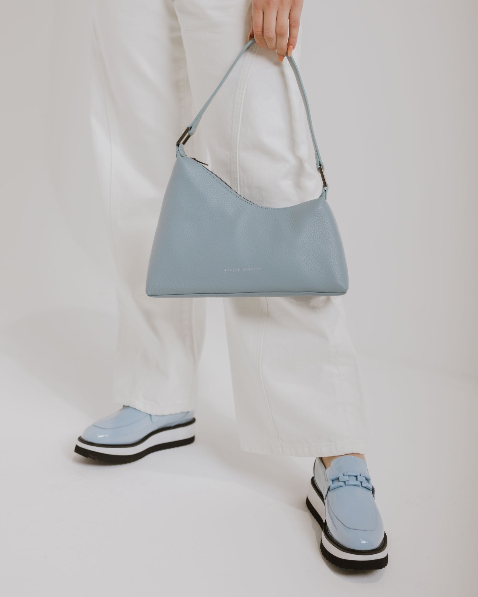 Kimber in Sky Blue Patent reimagines the loafer with attitude. A chunky contrast sole brings playful edge, while the crisp leather upper keeps things polished. Finished with a bold chain detail across the vamp, this loafer steps confidently into both casual and elevated looks. A fresh option for year-round outfitting - designed in New Zealand, worn everywhere.