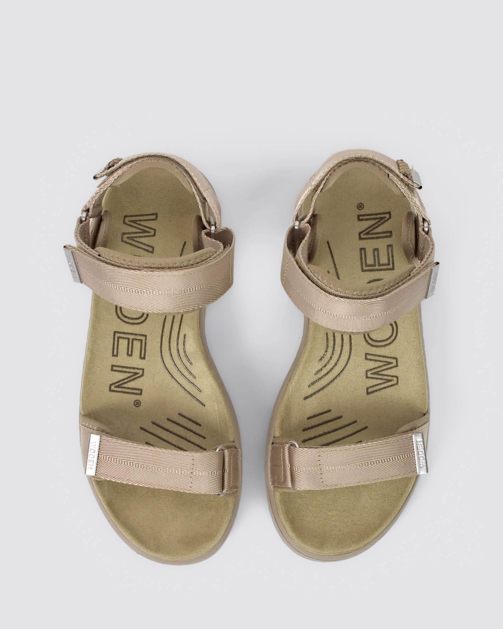 Woden Line Sandals in Silver Mink combine adjustable textile straps, fish leather accents, and Natural Soft rubber soles for lightweight, breathable comfort - perfect for walking, exploring, or city strolling.