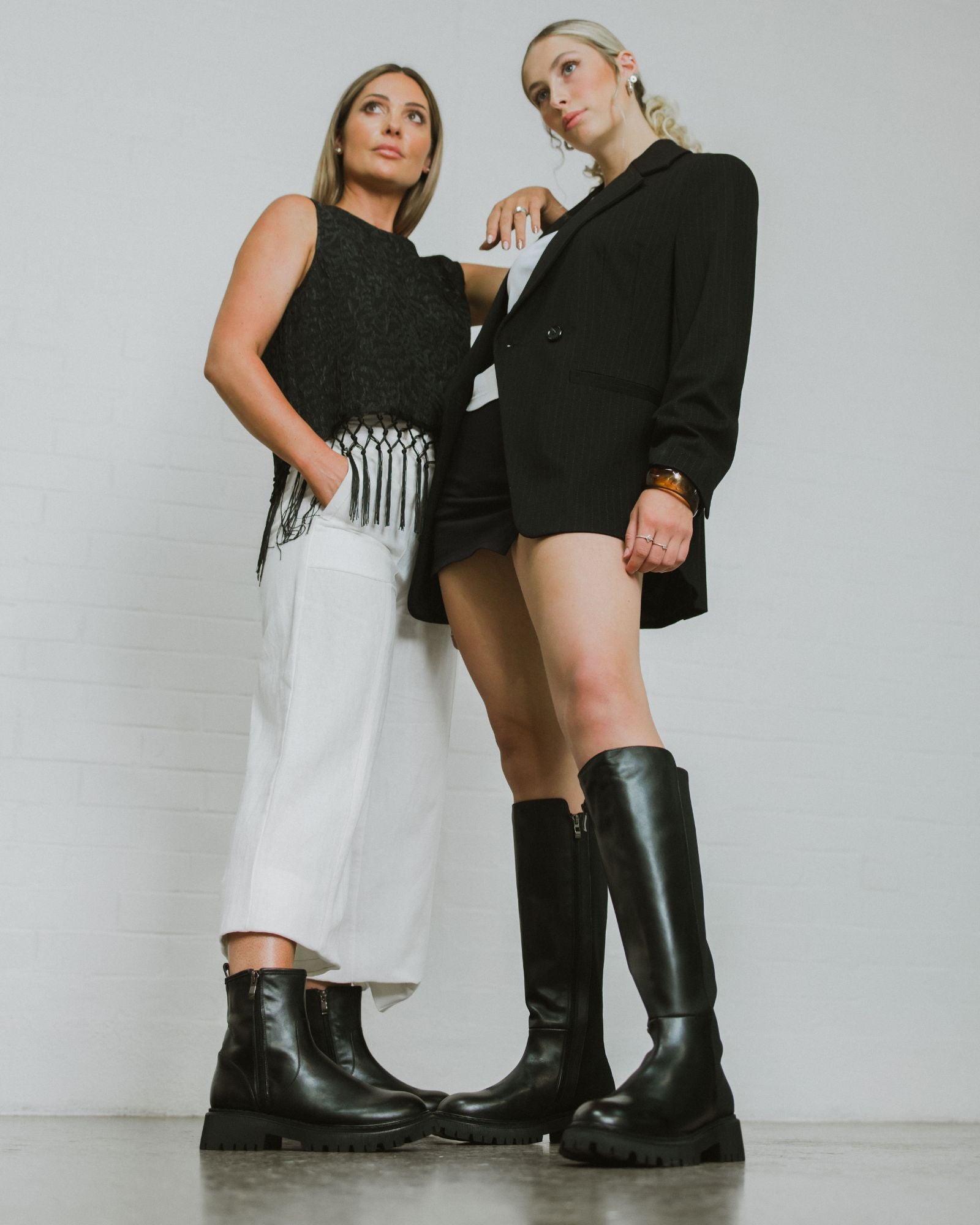 Style them with straight-leg jeans and a blazer for modern edge, throw them on with a dress to toughen things up, or wear them with leggings and an oversized knit for weekend ease. These are the boots you’ll reach for on repeat - tough enough to make a statement, comfortable enough for everyday life.