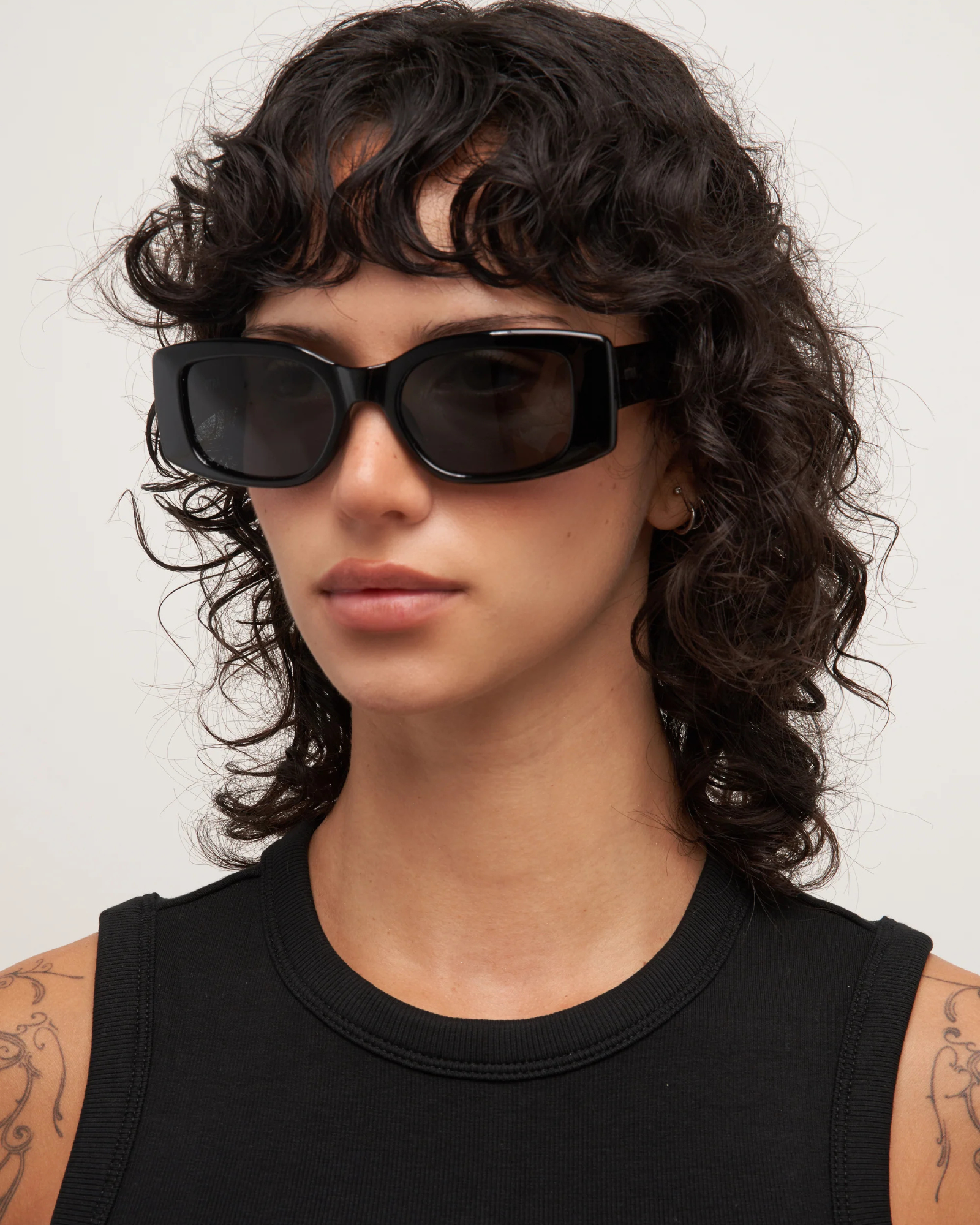 Bold and sculptural, Otra’s Piper Black sunglasses feature oversized rectangular frames with smoke lenses - a statement piece that balances strength, sophistication, and attitude.