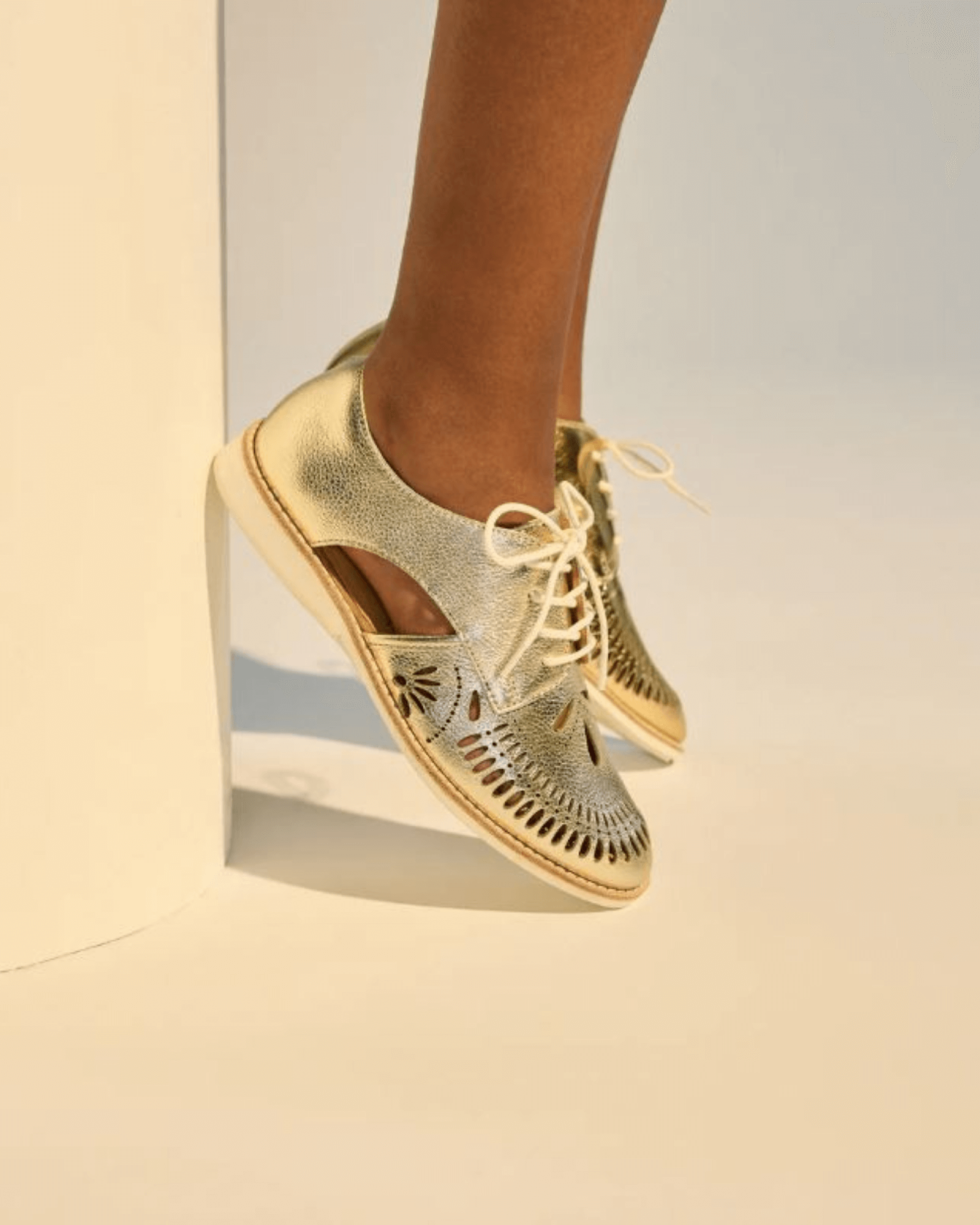 The Sidecut Boho Punch Gold blends lightweight comfort with eye-catching metallic leather, breathable punch detailing and cushy support. A summer staple designed for all-day wear.