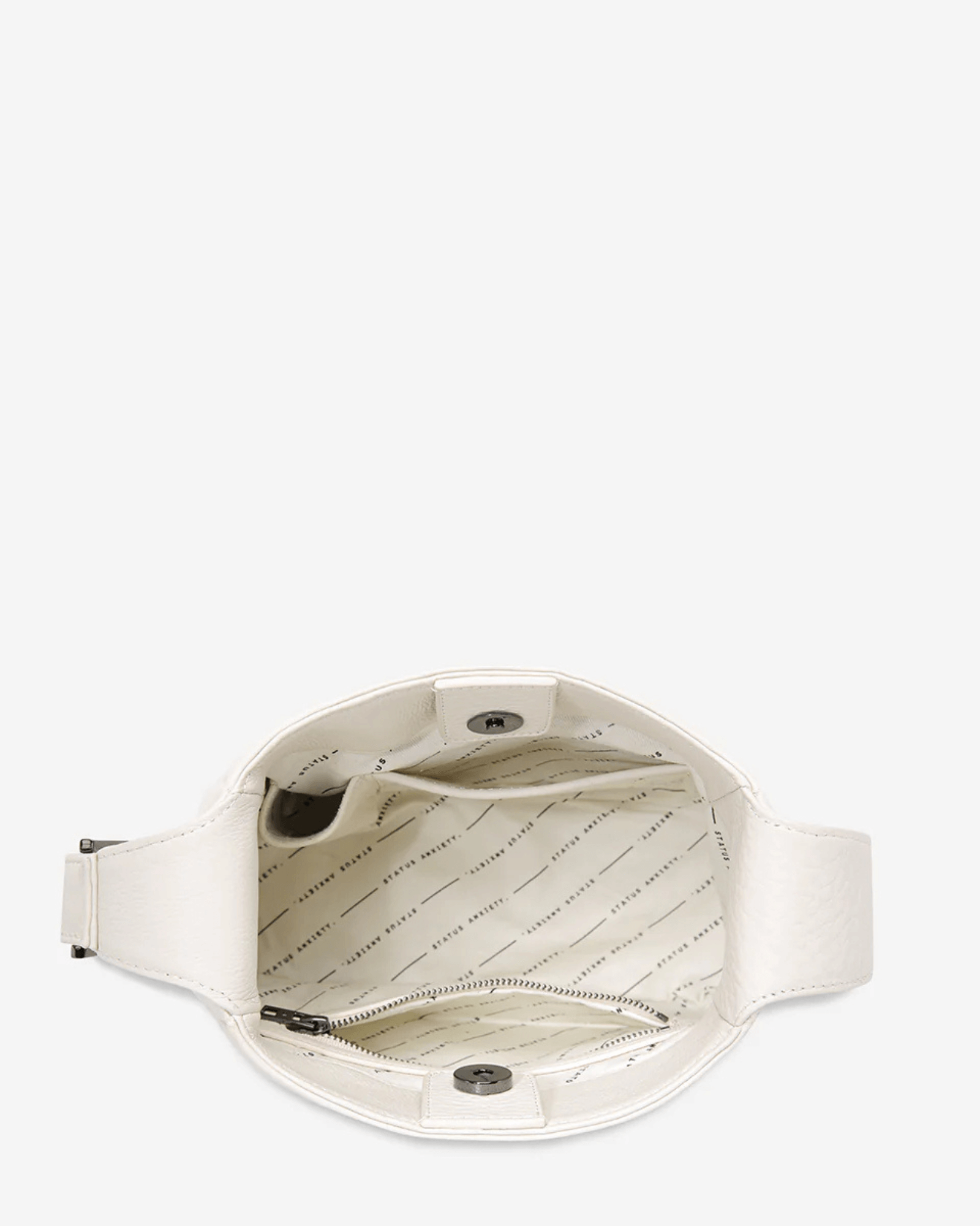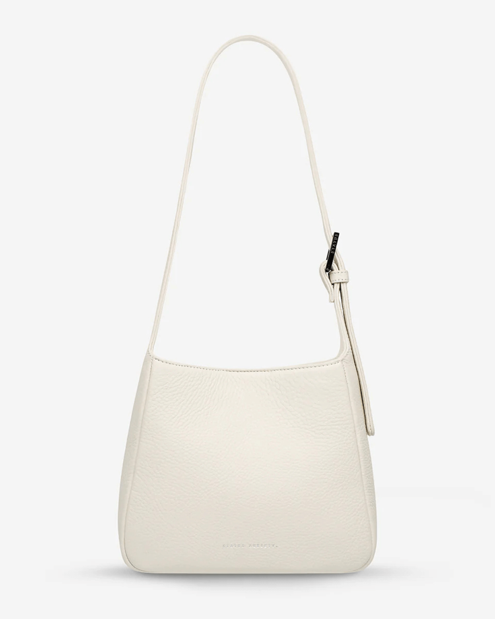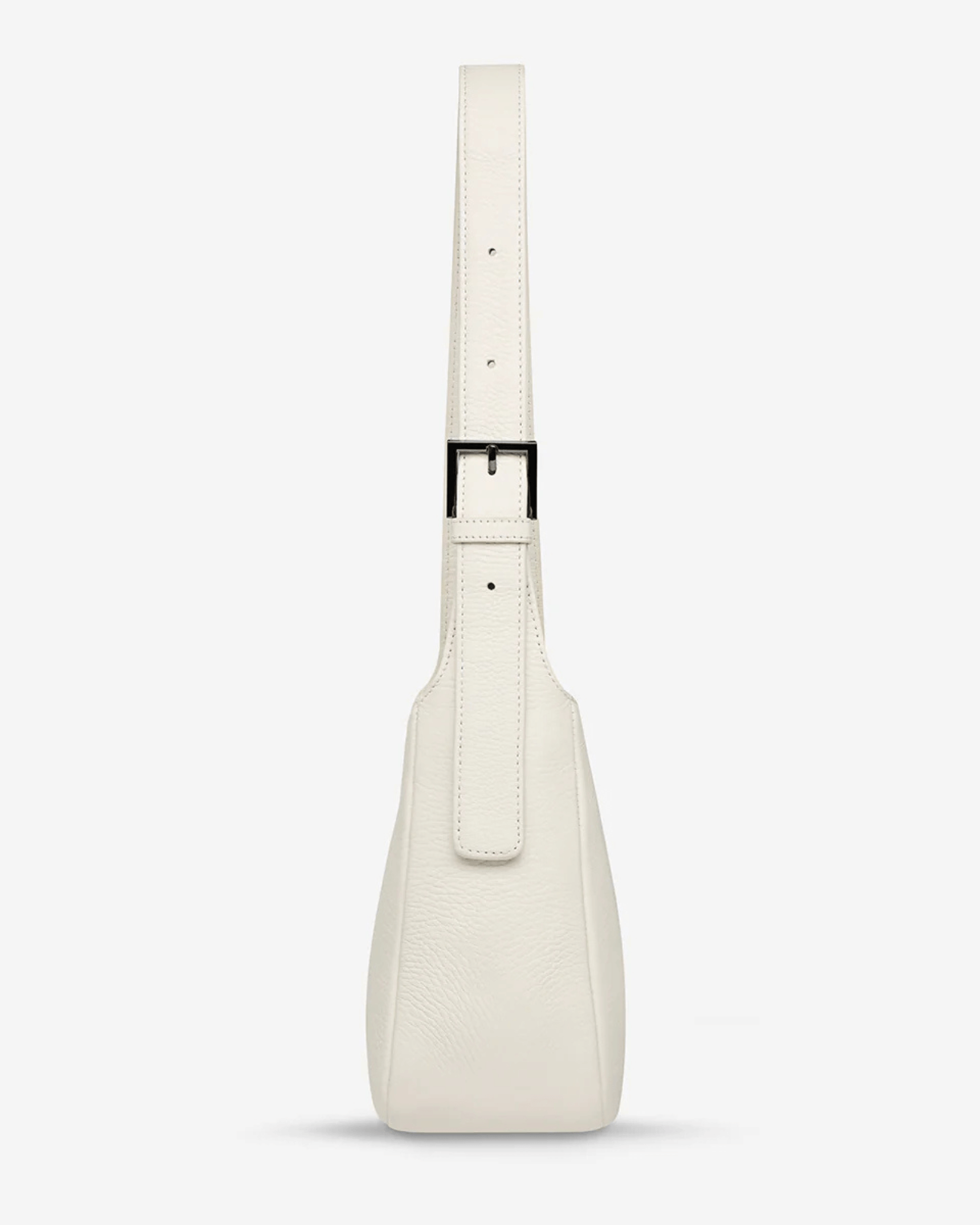 The Slipping Away Bag in Chalk by Status Anxiety is a leather shoulder bag with internal zipper and lipstick pockets, magnet closure, and adjustable strap. Designed for quick exits and busy streets, the Slipping Away Bag blends style and practicality. Pair with weekend dresses, tailored coats, or casual jeans - the soft chalk leather adds warmth while keeping essentials organised and accessible.