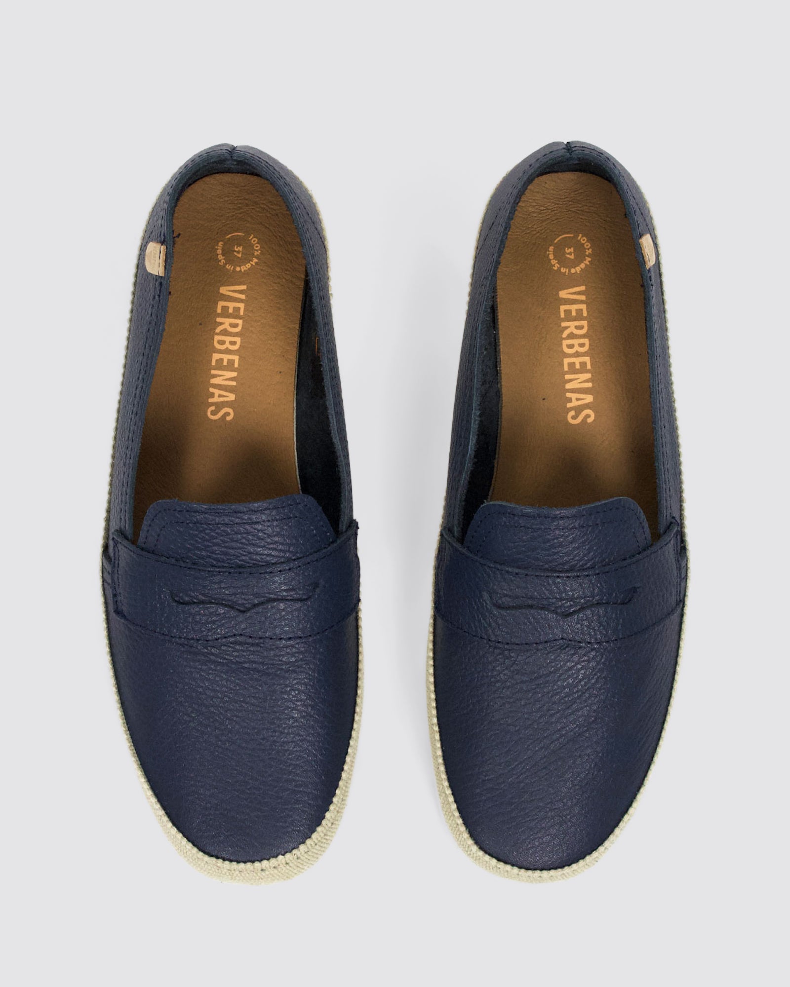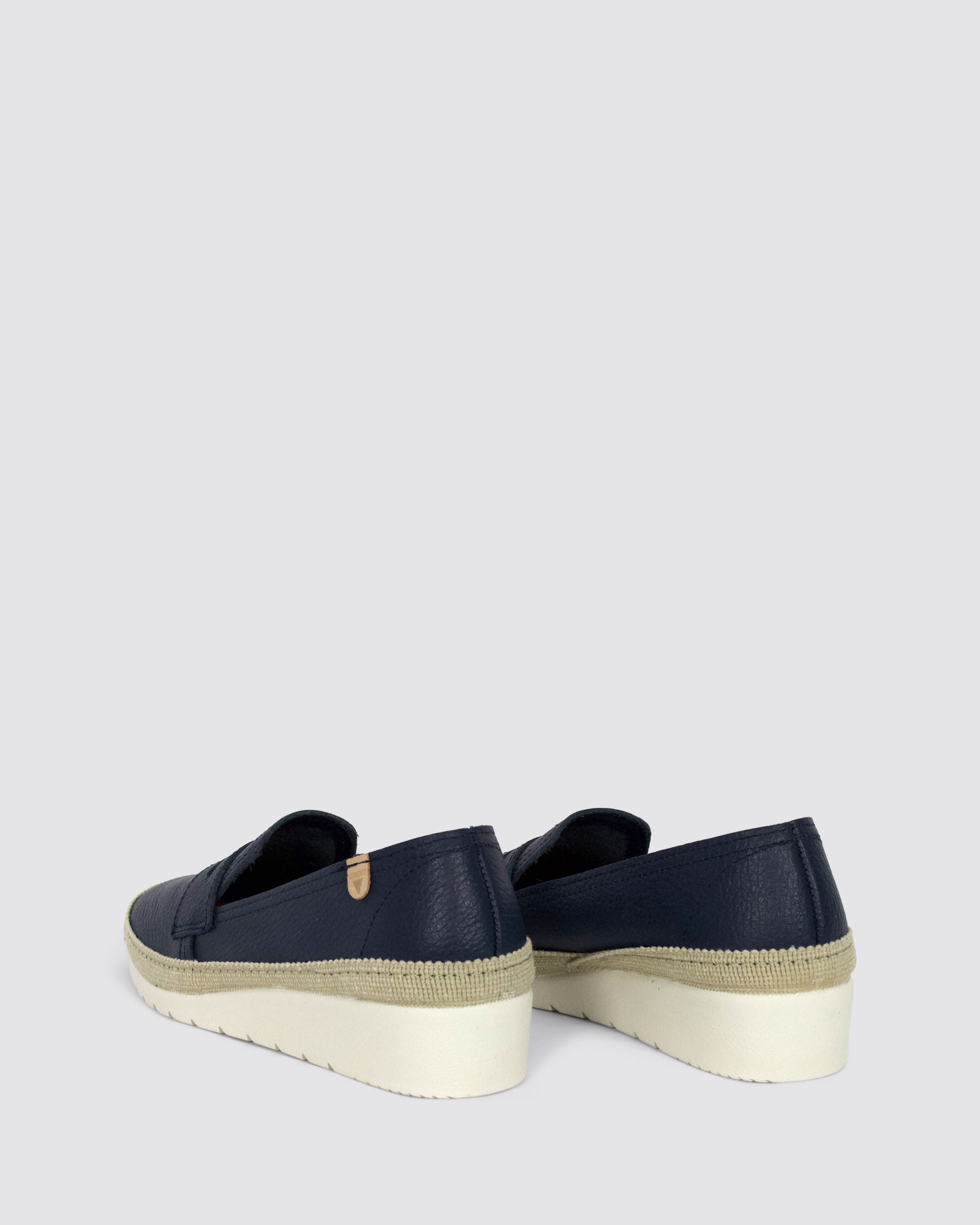 The Thalia Wedge Loafers in Marino by Verbenas offer polished slip-on style with a 3cm wedge heel. Leather upper and lightweight sole provide comfort for day-to-day wear with dresses, denim, or trousers.