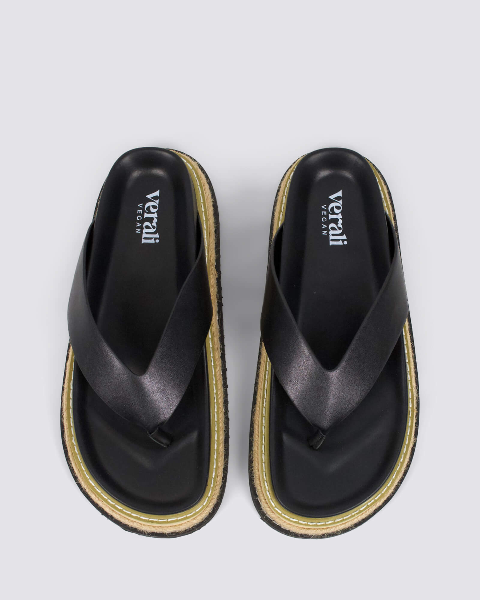 Theo in Black by Verali brings statement height to your casual summer wardrobe. With a cushioned upper, chunky 4cm platform sole, and minimalist thong silhouette, it’s made for all-day wear without sacrificing style. The layered sole adds a fresh, modern edge, while the vegan-friendly materials keep it conscious. Style with denim cut-offs, breezy linen sets, or an oversized shirt for effortless off-duty looks.