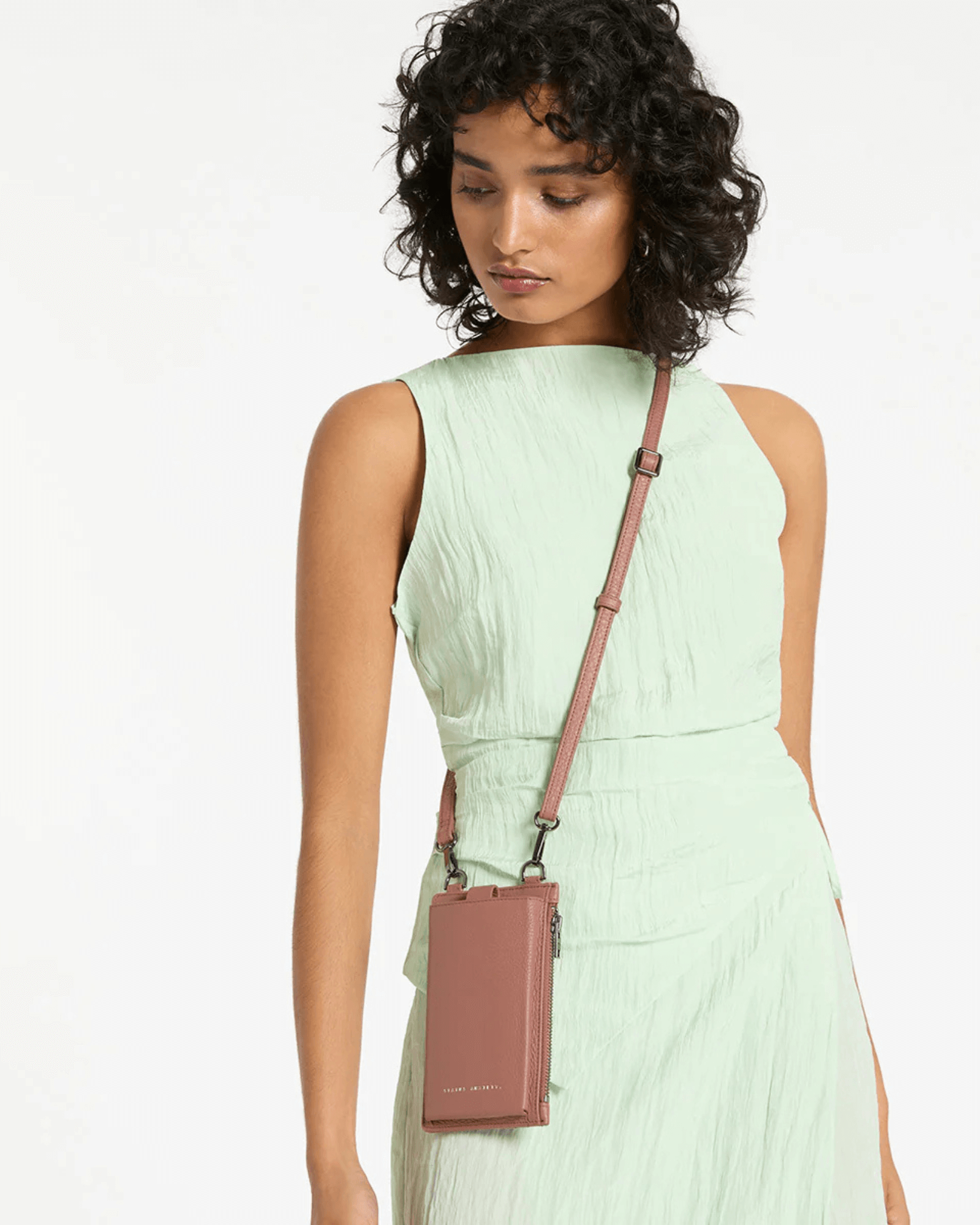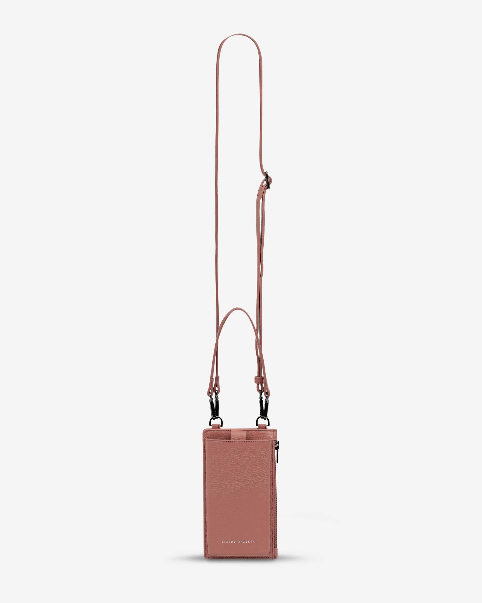 The Voyager Bag by Status Anxiety is a Dusty Pink leather crossbody bag that doubles as a wallet and phone case, with padded phone pocket and card slots. The Voyager Bag is perfect for events or weekends away, slipping effortlessly from day to night. Pair with casual jeans, tailored jackets, or weekend dresses - the sleek leather complements any urban wardrobe while keeping essentials secure.